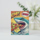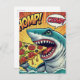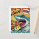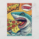 Esta tarjeta contiene un ilustracion divertido al estilo cómico de un tiburón que se mordía con ganas en una rebanada de pizza de pepperoni. Con un texto dinámico que dice "¡CHOMP!" y "¡YUMMY!" en negritas y vibrantes, el diseño captura la emoción y el humor de un improbable tiburón amante de la pizza. El estilo de arte caricaturista, con colores brillantes y detalles expresivos, hace de esta carta una elección divertida para cualquiera con una personalidad alegre. Perfecto para cumpleaños, notas de agradecimiento, o sólo para hacer sonreír a alguien, esta tarjeta seguramente será un éxito con cualquiera que disfrute de un diseño peculiar y humorístico.