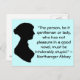Comience su día con las inolvidables palabras de Jane Austen, la escritora favorita de novelas románticas de todos. Este diseño presenta la cita de su novela Regency "Northanger Abbey" donde el señor Tilney comenta, "La persona, ya sea caballero o dama, que no tiene placer en una buena novela, debe ser intolerablemente estúpida" con la opción de un precioso fondo azul y silueta victoriana.