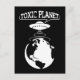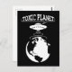 OVNI escaneando el planeta Tierra y etiquetándolo como "Planeta Tóxico". Gracioso diseño de textos y gráficos cínicos de protección ambiental.