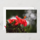 En esta impresionante imagen, una planta de hibiscos rojos se resalta sobre un fondo moteado.