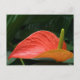 planta de anurio o flor flamingo con esparadrapo que sobresale del espacio rojo contra el follaje verde