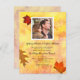 Anunciar un matrimonio privado en otoño con postales fotográficas. Invitar a la familia y amigos a una celebración de recepción sólo para recién casados con tarjetas temáticas asequibles de otoño. Hojas de arce y roble brillantes y coloridas decoran esta plantilla de invitación con una foto de la pareja en la parte superior. El inverso contiene líneas para dirigirse sobre un fondo de hojas.