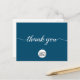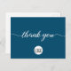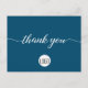Personalice esta plantilla de postal sencilla y fácil de usar con el logotipo, el mensaje, el nombre y la dirección de retorno de su empresa. Hágale saber a sus clientes, clientes, clientes que están agradecidos por su apoyo durante estos tiempos inciertos. Con un moderno guión impreso de "gracias" con adornos de cola larga. Fondo azul.