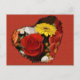 Fotografía de ramo de flores de rosa y margarita coloridas cortada en forma de corazón de bordes dentados sobre un fondo texturizado naranja en la parte delantera. El ramo está en la parte posterior en una fotografía de opacidad disminuida de todo el ramo. Personalice el texto de la plantilla, elimine el texto o haga clic en personalizar para seleccionar un estilo de fuente, tamaño y color que prefiera.