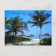 Postal Playa de arena con palmeras y un puesto con vistas