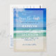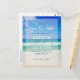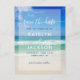 Esta hermosa playa, salvo la postal de fecha, cuenta con una magnífica foto de las olas del océano para una boda de destino. La fotografía de la playa de bonito, acompañada de una elegante tipografía blanca y azul, crea postales modernos y de moda para un evento de la isla tropical.