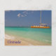 Un lugar tranquilo y relajante en una playa tropical de Granada con un surf en la playa y un catamarán amarrado en las aguas cristalinas.