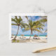 Destino tropical de vacaciones de playa con hamacas, tumbonas y palmeras en Tulum, México.