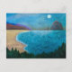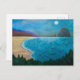 Escena caprichosa de una playa en la noche debajo de una Luna Llena. Los pescados son natación vista debajo del mar. Un bosque de árboles está en el primero plano.