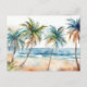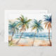 Postal Playa tropical de color arena, palmeras