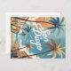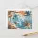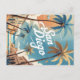 Un vibrante afiche de viaje de playa de estilo retro para San Diego cuenta con altas palmeras enmarcadas en una soleada escena de playa con olas estrelladas y edificios arquitectónicos distantes bajo un brillante cielo azul y naranja. El nombre de la ciudad "San Diego" está escrito en un estilo de letra en el centro.