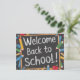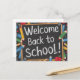 Celebra el inicio del nuevo año escolar con esta vibrante y divertida postal con temas de pizarra. Con un fondo clásico de pizarra adornado con coloridos dibujos en tiza de material escolar como lápices, ruedecillas y manzanas, este diseño aporta una atmósfera nostálgica pero alegre. El mensaje "¡Bienvenidos de vuelta a la escuela!" está escrito en un divertido tipo de tiza escrita a mano, añadiendo un toque de capricho y emoción. La forma perfecta de dar la bienvenida a sus nuevos alumnos a su clase.