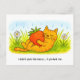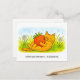 Postal Playful Cartoon Cat Hugging Big Strawberry