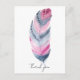 Hermoso diseño de pluma boho en rosa y gris con acuarela. Tarjeta de agradecimiento simple adecuada para cualquier ocasión.