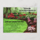 Hermosa hierba verde y frondosa con camas de mulch, flores rojas anuales, arbustos y árboles maduros en el fondo. Una representación perfecta de su cuidado del jardín, paisaje, horticultura, centro de jardín o negocio de diseñadores de paisajes. Este artículo está disponible como un conjunto completo que incluye artículos como tarjetas de visita, papel, anuncios, volantes, postales y más.