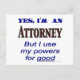 Sí, soy abogado, pero uso mis poderes para decir bien. Divertido eslogan de abogado para profesionales en letras mayúsculas legales en azul y marrón. Haga clic en Personalizar para agregar su nombre o monograma.