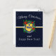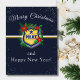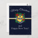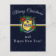 This elegant police-themed holiday postcard features a distinguished police shield beautifully adorned with poinsettias, evergreen branches, and holly berries.