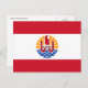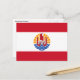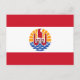 La bandera de la Polinesia Francesa se adoptó en 1984. Dos bandas horizontales rojas se unen a una banda ancha blanca; centrado en la banda blanca, hay un disco con un patrón de olas azul y blanco que representa el mar en la mitad inferior y un patrón de rayas doradas y blancas que representa el sol en la mitad superior; una canoa polinesia recorre el patrón de las olas; la canoa tiene una tripulación de cinco estrellas representada por cinco que simbolizan a los cinco grupos de islas; el rojo y el blanco son los colores polinesios tradicionales.