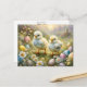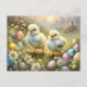 Postal Pollitos en un prado con huevos de Pascua, cosecha