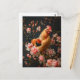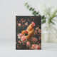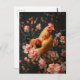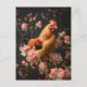 Una encantadora escena campestre con un orgulloso pollo enclavado entre suaves flores rosadas, que mezcla calidez rústica de casa de campo con delicada elegancia floral. Perfecto para los amantes del encanto de campo vintage.