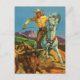 Ilustracion colorido de un vaquero sobre un caballo que roba un cabestro. De la portada de una historieta vintage