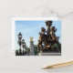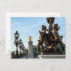 Vista del puente Pont Alexandre all. Primer plano de una estatua de niños llamada Ronde d'Amours con lámparas en segundo plano - París, Francia