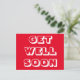 Ponte bien pronto, tarjeta postal roja blanca moderna y negrita