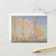 impressionist landscape painting depicting three poplar trees on the Banks of the Epte River near Giverny, Eure, Normandy, France, in fall, ln the light of a late afternoon sunset. Thee deep blue sky contrasts with the warm pink orange and yellow leaves, the foliage is reflected in the waters of the river