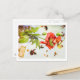 Un Gnome adorable se esconde dentro de una gran flor de amapola entre abejas y otros insectos. Imagen encantadora.