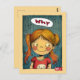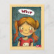 Un gracioso chica de jengibre con una sonrisa al estilo de un libro de historietas diciendo ¿por qué?
