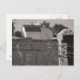 Personalizar la rústica postal de la cerca rural con tu propio mensaje personal. Esta encantadora postal del país personalizado cuenta con una fotografía de una granja de una antigua valla de cemento y alambre de púas. En el fondo hay un granero blanco y pradera en el medio oeste rural. Se ha añadido un tono sepia para realzar el ambiente rústico.