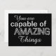 Envía vibraciones positivas a alguien para que levante sus espirales con las motivadoras palabras que eres capaz de asombrar cosas en tipografía artística en blanco sobre un fondo negro clásico.