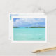 Casi puedes sentir que tu presión disminuye cuando ves escenas como esta de las Islas Turcas y Caicos. Los tonos verdes del agua son increíbles; el azul del cielo, ¡sabes que el aire debe estar fresco y limpio! El texto delante de la tarjeta dice: "Son las Islas Turcas y Caicos. ... ¡Respira!"