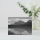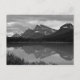 Un lago canadiense refleja las montañas y el paisaje, en blanco y negro.