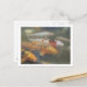 Un extraño y curioso koi tambalea a la superficie de un estanque a finales del otoño.