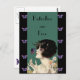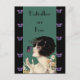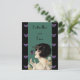 Esta imagen vintage de art deco tiene a una elegante dama de los años 20 sosteniendo margaritas con una mariposa morada sobrevolando su nariz. El fondo es un verde esmeralda profundo con un borde negro y mariposas violetas vibrantes. El texto dice que las mariposas son libres. Vea mi tienda Arte de MAR para encontrar productos que coincidan con este diseño.