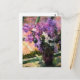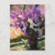 Postal de Mary Cassatt Lilacs. Óleo sobre lienzo de 1880. La artista estadounidense Mary Cassatt fue una de las grandes pintoras impresionistas. Lilacs in a Window es un bonito y sencillo cuadro con un montón de lilatas recién cortadas en un jarrón morado sentado sobre un ventanal. Las lilas son a la vez moradas y blancas y su follaje sigue siendo verde oscuro. Un hermoso regalo para los fans de Mary Cassatt, el impresionismo, las pinturas de lilas y las pintoras americanas.