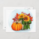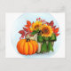 Tarjeta postal estacional de calabaza de flores amarillas
