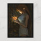 Una joven princesa de anime elfo, junto a la brusca corteza de un árbol antiguo en un bosque, sostiene en sus manos a una pequeña criatura feroz... un pájaro, un fénix, algo verdaderamente mágico. La luz que irradia del fénix se enciende en los hilos dorados de su vestido.