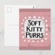 "Soft Kitty Purrs" es un divertido diseño de texto con una forma de acento blanco rodeado de puntos de textura caprichosos.