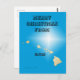 El mapa de Hawaii es superpuesto sobre un fondo azul con una estrella blanca. Texto: Feliz Navidad desde ... aparece en la parte superior.