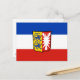 Postal con bandera variante de Schleswig-Holstein; diseño con tricolor horizontal de rojo, blanco y azul, y con escudo de armas estatal en el centro