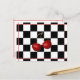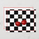 Cerezas rojas y ric-rac contra cheques en blanco y negro. ¡Vea también los sellos postales correspondientes!