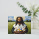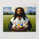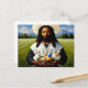 Esta postal personalizado de Pascua muestra una imagen del Jesús Negro sosteniendo dos conejillos junto con una canasta de huevos de Pascua. Este fue mi giro creativo al combinar dos temas. Esta postal es un gran regalo de Pascua para los creyentes cristianos.