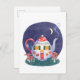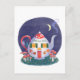 Acogedora y pintoresca casa de tetera de champiñones resplandeciente bajo la luz de la luna rodeada de hongos rojos manchados. Ilustracion original de Noël Snow.
