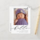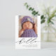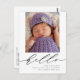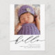 Esta elegante tarjeta postal de anuncio de nacimiento incluye caligrafía moderna que dice "hola" y una gran foto. Debajo del guión, puede agregar el nombre completo de su bebé, la fecha de nacimiento, las estadísticas de nacimiento y sus nombres. En la parte posterior de la postal, puede escribir un mensaje personalizado a sus seres queridos.