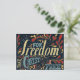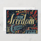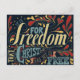 La tipografía hecha a mano imprime la postal de la Biblia verso Galatians 5:1 - "Es por la libertad que Cristo nos ha liberado". Como esta obra de arte ha sido cuidadosamente elaborada a mano con un mínimo de ajuste digital, contiene algunos defectos menores que añaden encanto al producto.