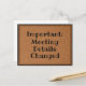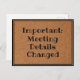 Esta postal es perfecta para enviar a la gente para que conozca los cambios de detalles de la reunión. Les gustará el cambio de detalles. Es un detalle agradable mantener su negocio funcionando sin problemas.