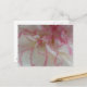 Esta postal contiene una detallada fotografía de primer plano de una impresionante flor de clavel rosa y blanco. La fotografía fue tomada usando macrofotografía para mostrar la belleza de esta flor blanca que parece haber sido pintada con delicados flecos rosados.