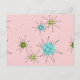 Este patrón de postales de estrenos atómicos cónicos rosados (de gran tamaño) presenta estallidos atómicos icónicos. ¡Así es! La antigua escuela, el fondo de color rosa de la primera dama con especkles de oro, es el escenario perfecto para el turquesa vibrante, el apetitoso apio y los círculos kitschy de color verde pera. Las manchas de color se colocan esporádicamente en varios tamaños, con líneas en forma de V negra superpuestas que forman las estallidas modas del sputnik. Diseñado siguiendo un patrón de platos de la década de 1950, este diseño de inspiración retro tiene todo lo necesario para ser realmente moderno a mediados de siglo.